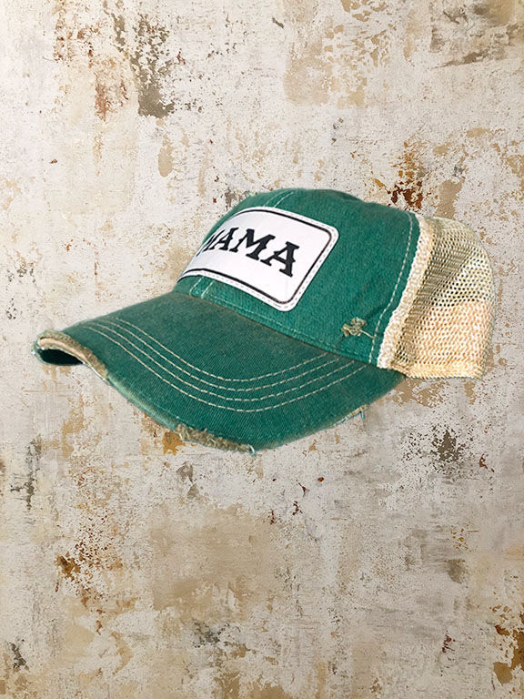 Kelly Green "Vintage Over Dyed" Distressed Trucker - Beige Mama
